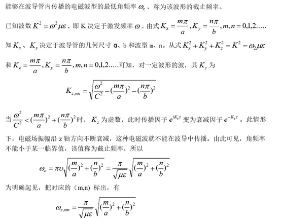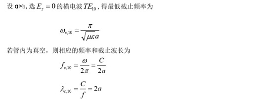 可见,波导管中能传输的最大波长取决于波导管的尺寸。由于波导管的几何尺寸不能做的过大,所以波长在厘米波段,波导管的应用最广。