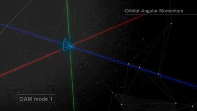 受螺旋相位因子的影响,具有OAM的电磁波被称为“涡旋电磁波”,沿着传播方向呈螺旋状。具有OAM的电磁波的相位旋转次数称为OAM模式。不同的OAM模式相互正交,在同一频点上可传输多路正交信号,从而提升频谱效率和信道容量。这就是OAM复用技术。