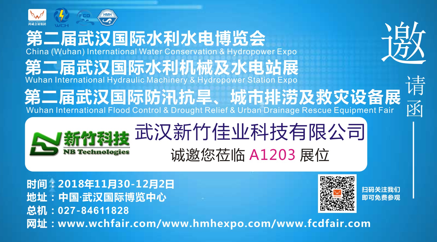 新竹科技诚挚邀请国内外特别是华中地区从事水利行业的用户、经销商、系统集成商和工程商,以及我们的友商,莅临武汉国际博览中心(A1厅A1203展位),携手共赢!