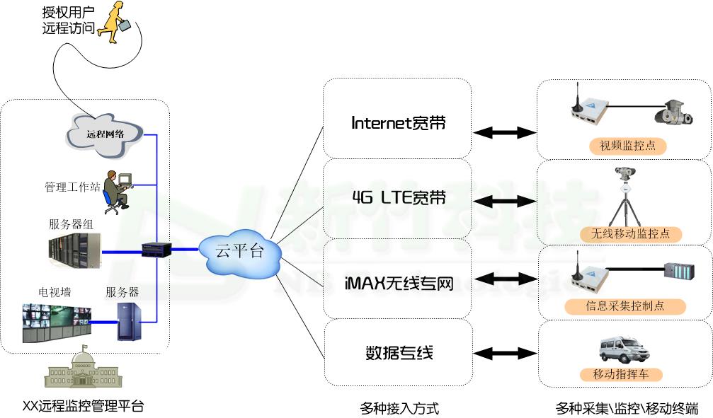 远程访问信息点的典型组网拓扑图如下: