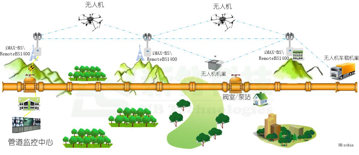 典型油气管线无人机无线专网组网示意图: